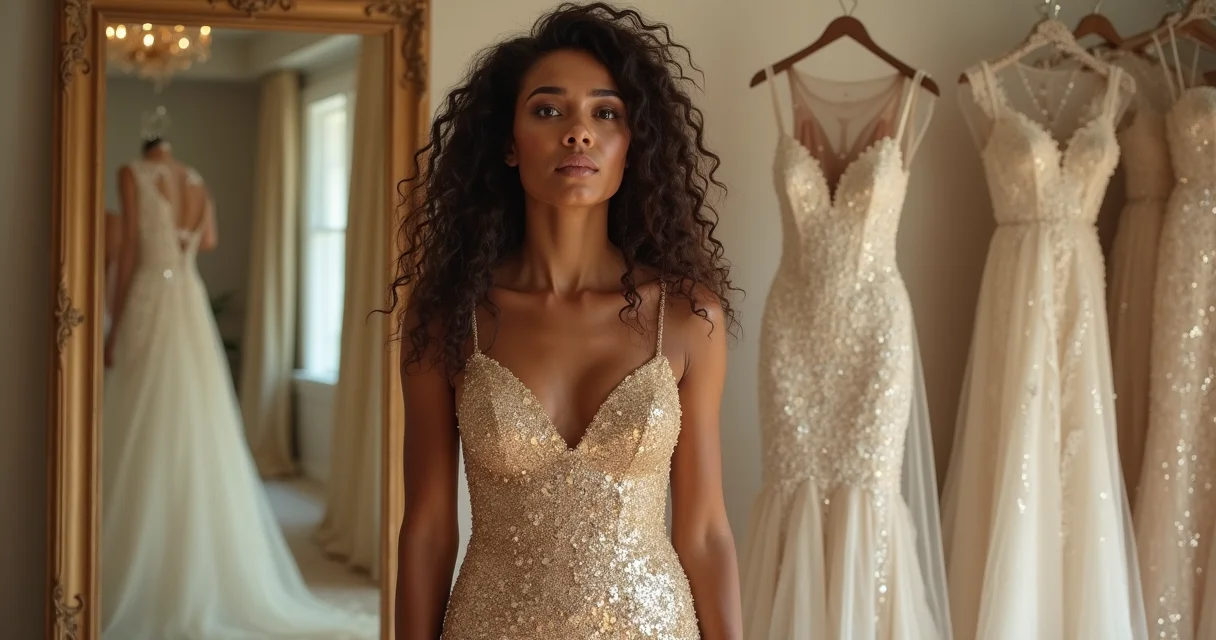 A Solução Definitiva: O vestido é uma extensão de quem você é. A escolha do vestido deve priorizar a essência e segurança da noiva, não apenas opiniões alheias. Se você é mais clássica, um dourado champagne com renda pode ser perfeito. Se é ousada, um dourado mais vibrante e com cortes modernos pode ser a sua cara. O importante é se sentir linda, confiante e, acima de tudo, você mesma.