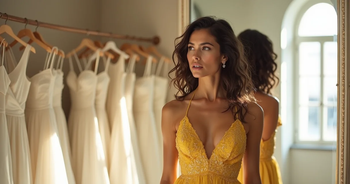 Aqui está o detalhe: Para peles neutras, a sorte é maior – quase todos os dourados funcionam. Mas ainda assim, teste sob luz natural e artificial. O mesmo vestido que brilha suave à tarde pode parecer um farol à noite.