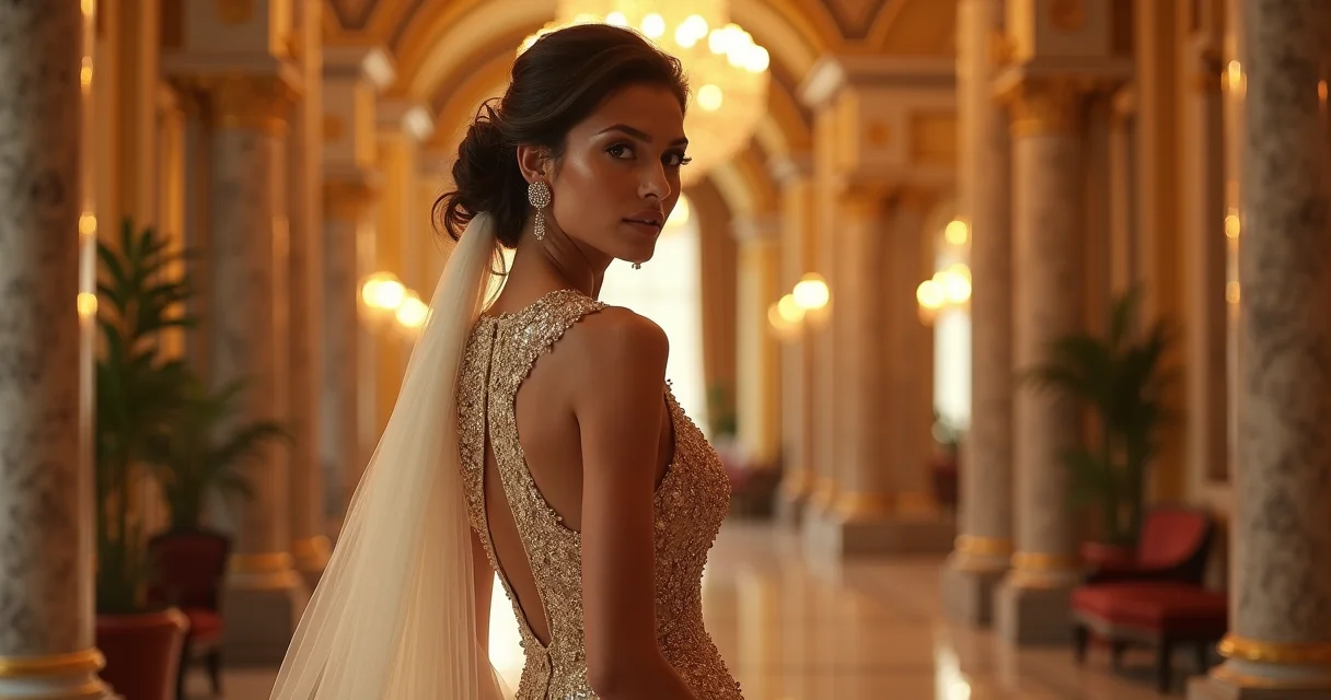 “O segredo de um vestido dourado de gala está na dosagem. O brilho deve complementar, não ofuscar a noiva. Equilibre o luxo do tecido com um design que valorize sua silhueta.” – Estilista de Noivas Especialista.