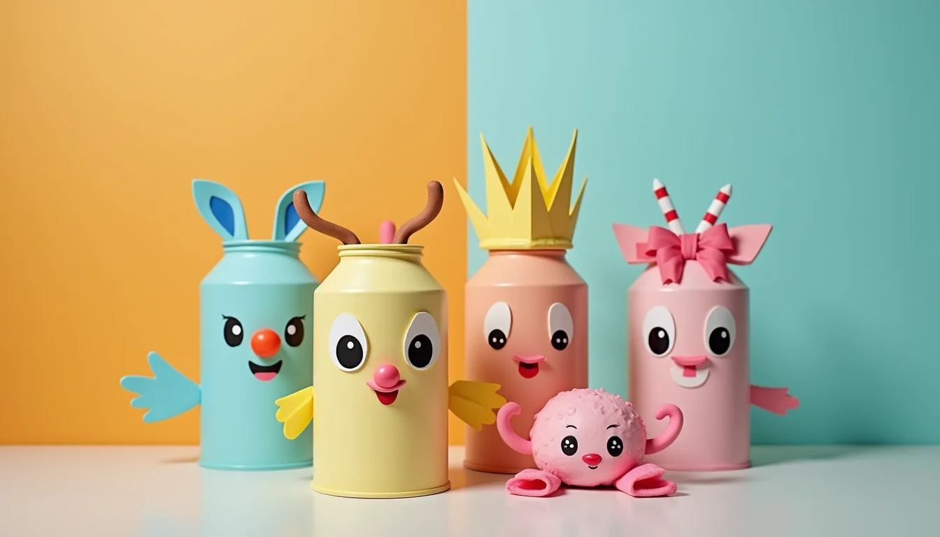 Transformar latas em recipientes para doces é um clássico que nunca falha. Você pode pintá-las com cores vibrantes ou cobri-las com papel decorado. Dentro, acomode guloseimas variadas, como balas, chocolates pequenos, pirulitos ou até mesmo um mini kit de massinha para a criançada.