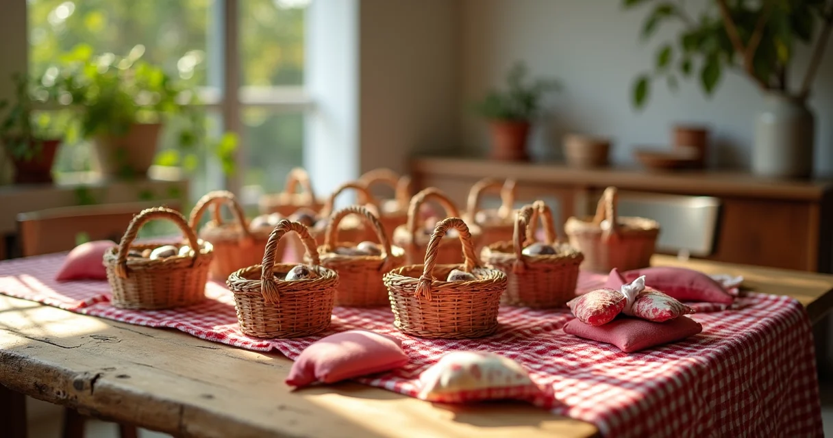 Escolher entre mini cestas de vime, potes de geleia ou sacolinhas de feltro ensina sobre custo-benefício e praticidade.