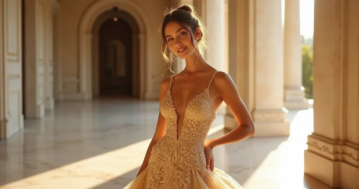 Quando falamos em vestido de noiva dourado luxuoso com um toque imperial, estamos pensando em grandiosidade. Para encontrar as melhores ideias de vestido de noiva dourado deslumbrante, considere o estilo Princesa Imperial, por exemplo, que é a personificação disso, caracterizado por saias volumosas que parecem flutuar e um trabalho manual intenso, com bordados que são verdadeiras obras de arte.