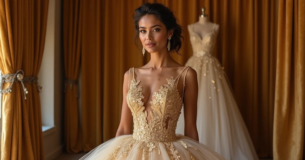 Quanto custa um vestido de noiva dourado de luxo? A verdade é que o preço vai muito além da etiqueta, e hoje você vai descobrir o segredo que as lojas não contam.