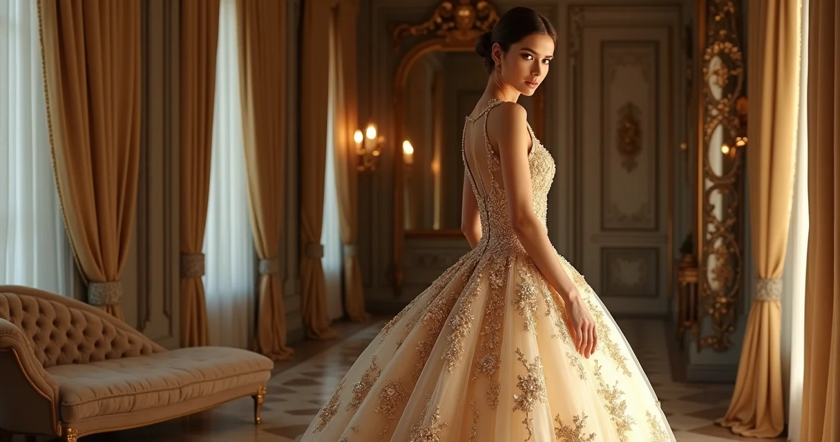 - Principais Especificações: Criações exclusivas, feitas sob medida por maisons renomadas. Utilizam os materiais mais nobres, como seda pura, fios de ouro 24k e bordados com milhares de cristais e pérolas.