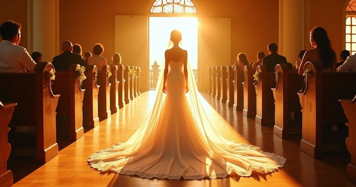 A verdade é a seguinte: Um véu de 3 metros, que é o padrão do mercado brasileiro, já cria um efeito majestoso. Mas em igrejas com corredores longos ou espaços amplos, você pode precisar de 4 a 5 metros para preencher o ambiente com elegância.